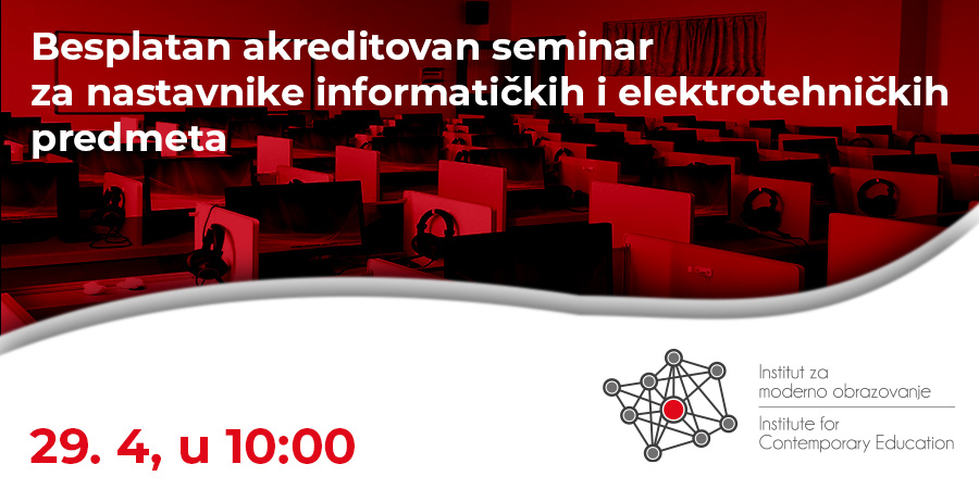 Akreditovani seminar „Projektno orijentisana nastava” Centar za stručno usavršavanje i Institut za moderno obrazovanje organizuju akreditovani seminar „Projektno orijentisana nastava”, koji će se održati u subotu, 15. decembra, od 9 do 16 časova, u prostorijama Instituta (Beograđanka, Masarikova 5, ulaz iz Kralja Milana, Science Hub). Osnovne informacije o seminaru: broj u katalogu – 562, kompetencije – K2, prioritetna oblast – P3, cena – 1.600…