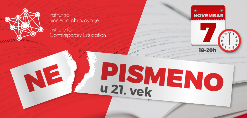U sredu, 7. novembra, u organizaciji Centra za karijerno vođenje Instituta za moderno obrazovanje, održaće se besplatna tribina pod nazivom „(Ne)Pismeno u 21. vek”. Tribina se održava od 18 do 20 časova u prostorijama Instituta za moderno obrazovanje u Beogradu (Beograđanka, Masarikova 5, ulaz iz Kralja Milana, IV sprat, velika konferencijska sala), a svi zainteresovani svoje prisustvo mogu obezbediti putem ovog linka.