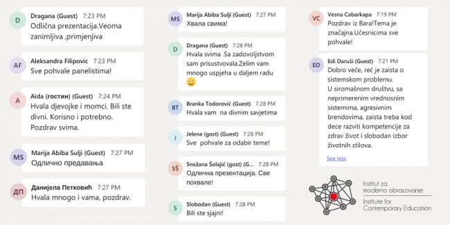(Srpski) Institut za moderno obrazovanje, u organizaciji Centra za stručno usavršavanje organizovao je predavanje Ocenjivanje koje vodi učenju. Predavanje je zainteresovalo veliki broj kolega koji su ispratili predavanje i na kraju se priključili diskusiji i postavljali pitanja predavaču.