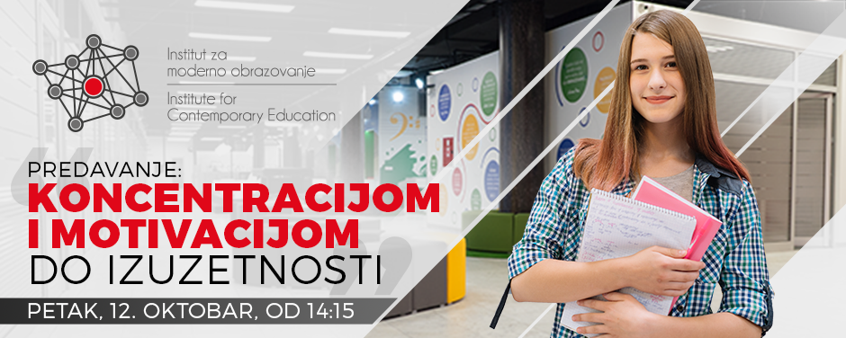 Sledeće predavanje Centra za stručno usavršavanje Instituta za moderno obrazovanje u Beogradu namenjeno stručnom usavršavanju zaposlenih u obrazovanju održaće se u petak, 12. oktobra, od 14:15 do 15:45 časova, na temu „Koncentracijom i motivacijom do izuzetnosti”.
