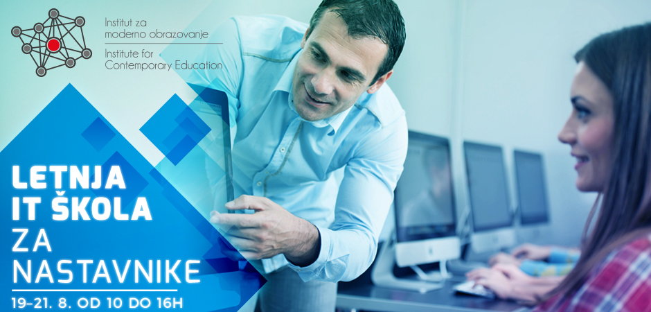 Letnja IT škola za nastavnike 2019 namenjena je svima zaposlenima u oblasti obrazovanja i održaće se u periodu od 19. do 21. avgusta, u trajanju od 10 do 16 časova. Očekujemo vas u najsavremenije opremljenim prostorijama Instituta za moderno obrazovanje, Masarikova 5 (ulaz iz Kralja Milana, zgrada Beograđanke, III sprat).