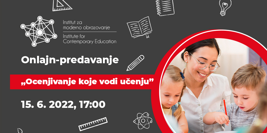 Institut za moderno obrazovanje, u organizaciji Centra za stručno usavršavanje, organizuje onlajn-predavanje „Ocenjivanje koje vodi učenju”. Predavanje će se održati u sredu, 15. 6. 2022, u 17:00h, na DL platformi Instituta za moderno obrazovanje. Svim prijavljenim kolegama poslaćemo link za pristup na dan predavanja.