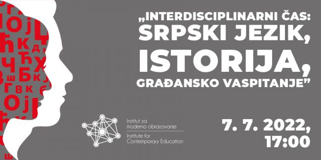 Onlajn-predavanje: Interdisciplinarni čas: srpski jezik i književnost, istorija i građansko vaspitanje Institut za moderno obrazovanje, u organizaciji Centra za stručno usavršavanje, organizuje onlajn-predavanje „Interdisciplinarni čas: srpski jezik i književnost, istorija i građansko vaspitanje”. Predavanje će se održati u četvrtak, 7. 7. 2022, s početkom u 17:00, na DL platformi Instituta za moderno obrazovanje. Svim…