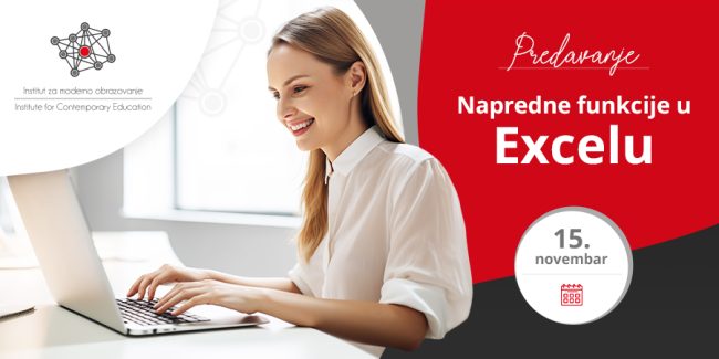 Efikasno korišćenje Excela u nastavi: Napredne tehnike i trikovi Institut za moderno obrazovanje vas poziva na besplatno onlajn-predavanje „Napredne funkcije u Excelu”. Predavanje je namenjeno nastavnicima, edukatorima i svima koji žele da otkriju kako Excel može olakšati i unaprediti nastavni proces. Bez obzira na predmet koji predajete, Excel može biti koristan alat za unapređenje nastave…